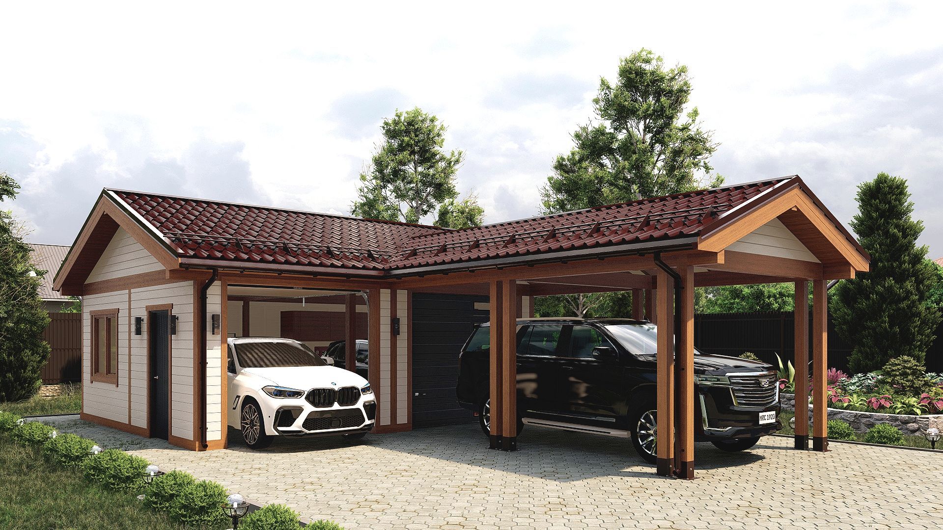 • Навес к частному дому для автомобиля ГРИМСТАД