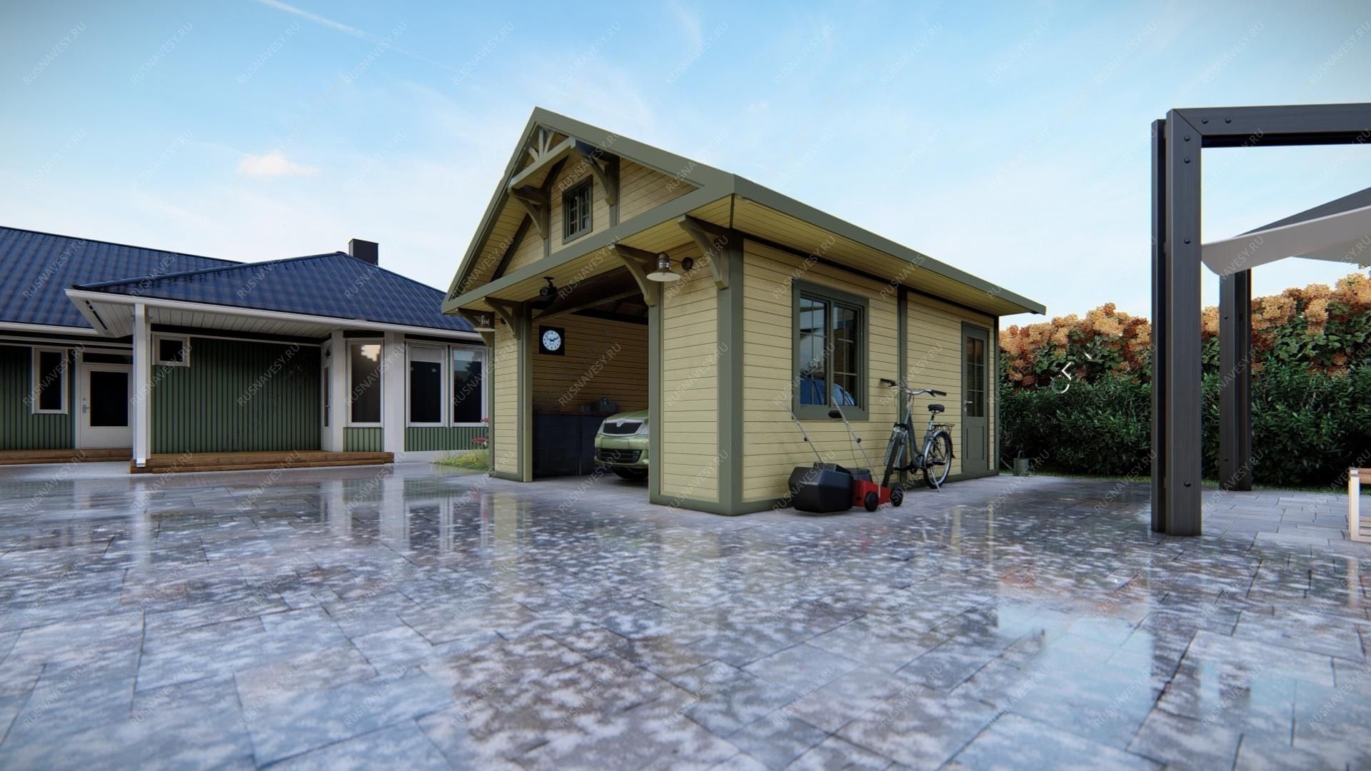 • Навес к частному дому для автомобиля ГРИМСТАД