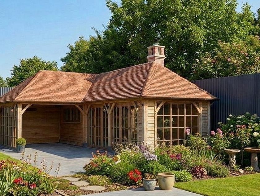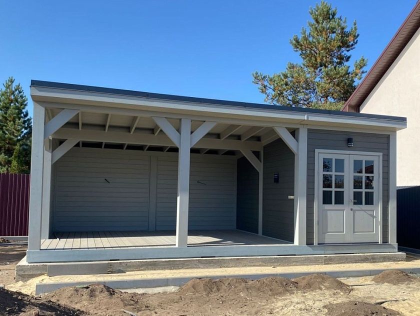 • Навес к частному дому для автомобиля ГРИМСТАД