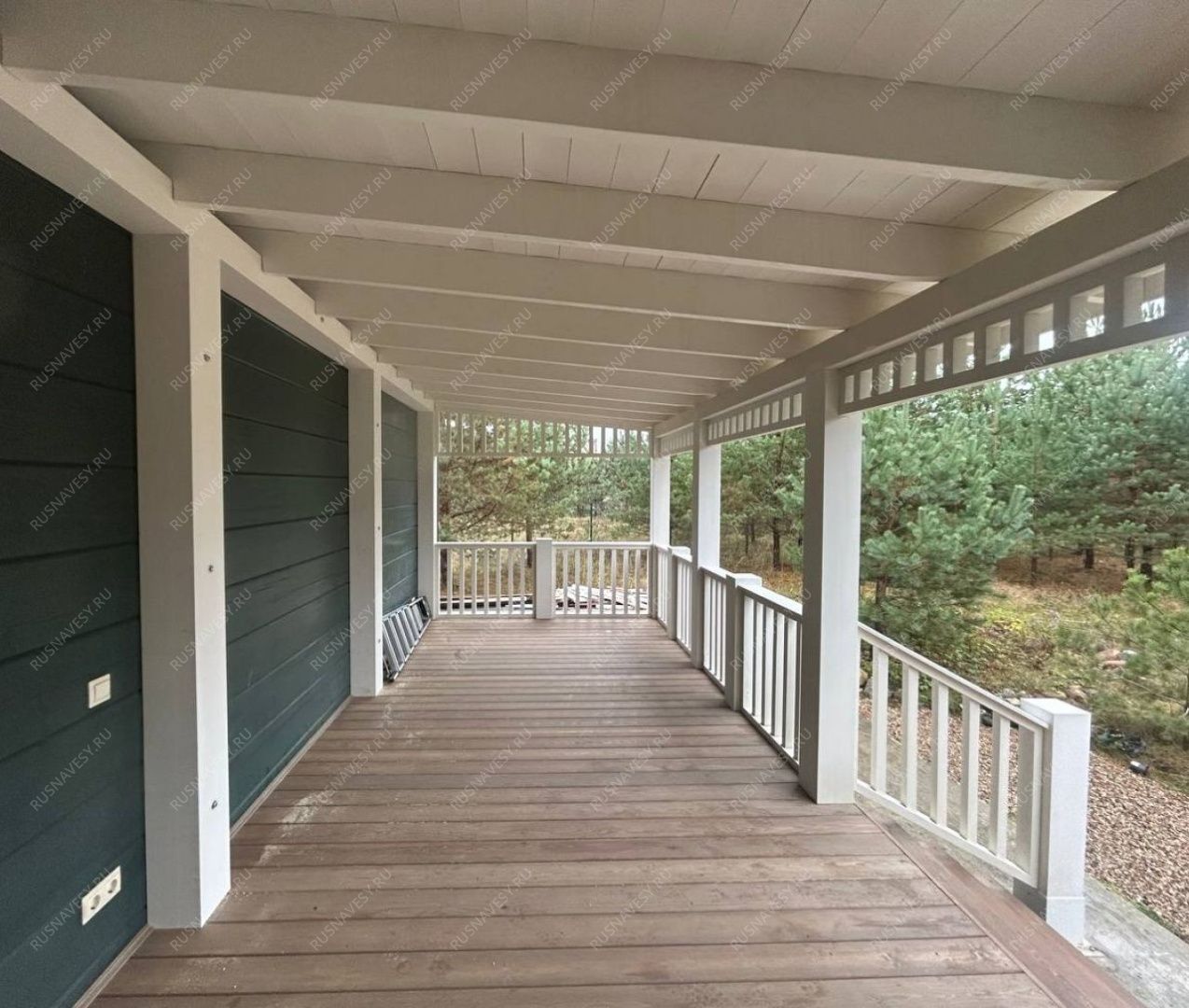 Конструкция изготовлена из хвойных пород древесины (ель, сосна). Сорт по лицевой стороне: АВ Материал -массив сухой строганый камерной сушки. Возможна замена: Материал - клееный брус +массив строганый камерной сушки или Лиственница..