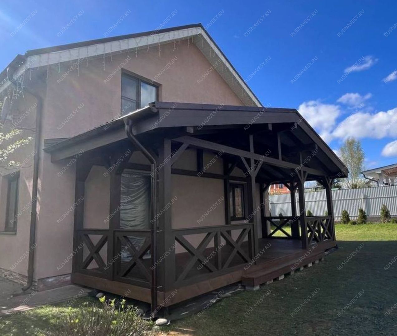 Конструкция изготовлена из хвойных пород древесины (ель, сосна). Сорт по лицевой стороне: АВ Материал -массив сухой строганый камерной сушки. Возможна замена: Материал - клееный брус +массив строганый камерной сушки или Лиственница..