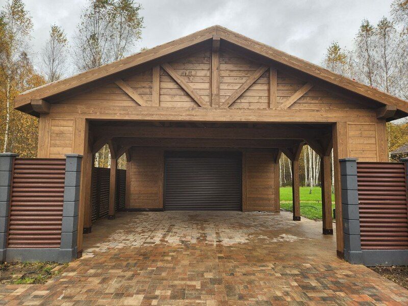 • Навес к частному дому для автомобиля ГРИМСТАД