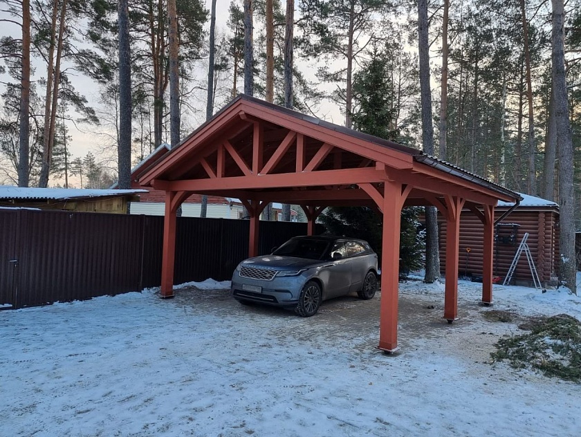 Компания «Русские навесы» – крупнейшей производитель навесов для одного автомобиля или нескольких единиц автотехники. В своих изделиях мы используем пиломатериалы из хвойных сортов древесины (ель, сосну), а в качестве конструктивного элемента – клееный брус.
